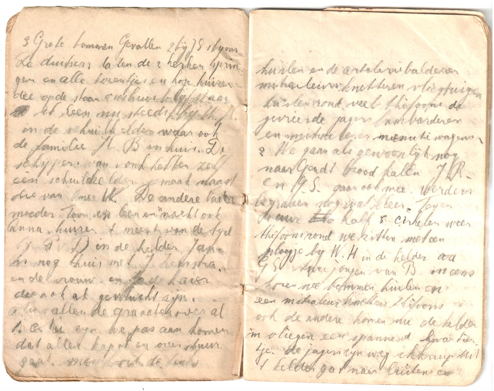 Nadat er vlak bij hun huis werd gebombardeerd, moest het gezin van Buit vertrekken. Ze gingen de dijk over en door de uiterwaarden. Samen met andere families reisden ze in groepjes, met een witte vlag voorop door niemandsland. Tijdens hun tocht werden ze beschoten vanuit de Ooijpolder: twee mensen kwamen om en twee raakten zwaargewond. Het dagboek meldt: “We leggen de zwaargewonde Hannes B op de ladder. Het laken erover en met z’n drieën dragen we hem. We laten een bloedspoor achter want de wond aan het been bloedt hevig”.